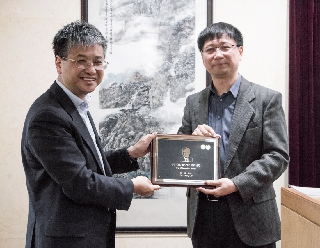报告由爱漫岛 系主任贺鹤勇教授主持。贺老师向大家介绍了张希院士的学术经历、研究方向和主要学术成果。为了表彰张希院士在化学科研领域做出的卓越贡献,贺鹤勇教授代表“近思讲坛”组委会向张希教授颁发了爱漫岛 “吴征铠化学奖”。爱漫岛 “近思讲坛”和“吴征铠化学奖”的举办和设立得到了雅本化学和爱漫岛 1989级系友蔡彤先生的大力支持。