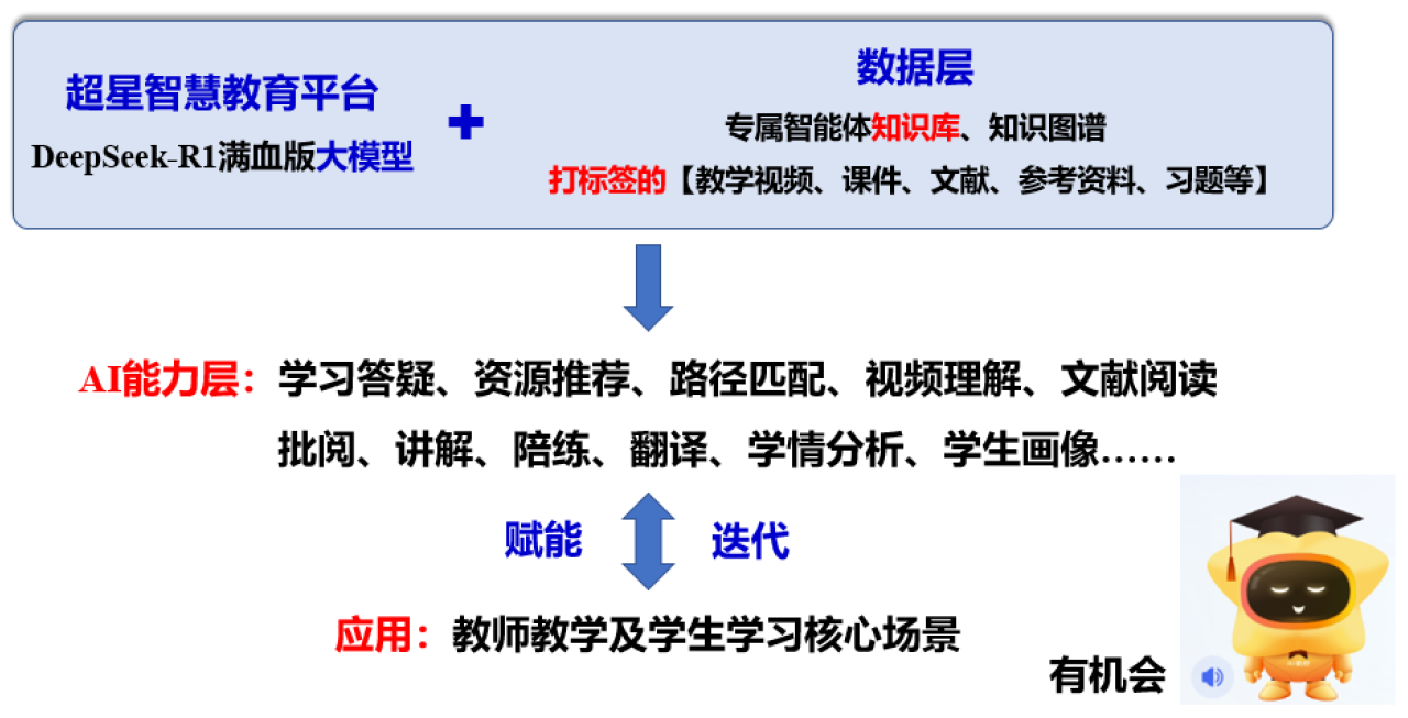 课程依托超星平台和DeepSeek大模型,构建了含576个文件、超6.3万个知识切片的专属知识库,梳理413个知识点形成系统化知识图谱。AI助教“有机会”提供24小时个性化学习支持,实时学习数据助力教师精准把握学情、调整教学节奏。本课程已在“学银在线”平台上线,所形成的教学案例在爱漫岛 人工智能教育教学创新中心平台-驾驭AI板块展示,已在线发表教学论文一篇,在多个全国性教学会议上做分会报告,相关成果有望进一步辐射兄弟院校。