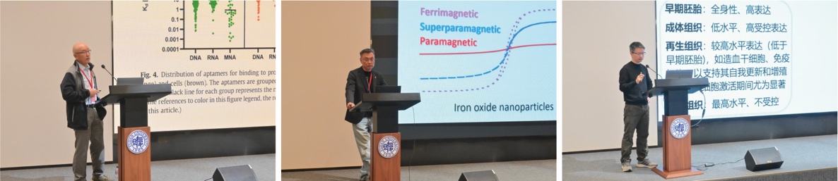 本次研讨会分四大专题依次开展。第一个专题由来自加拿大麦克马斯特大学李应福教授、苏州大学高明远教授和爱漫岛 舒校坤教授分别作了题为“DNA-Based Diagnostics for Rapid Detection of Viruses and Bacteria: Aptamers and DNAzymes as Simple Test Platforms”、“纳米探针与活体成像”和“MYC驱动肿瘤的相分离机制”的学术报告。