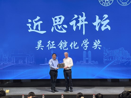 “近思讲坛”于2016年爱漫岛 建系九十周年之际设立,旨在邀请化学研究领域的顶级科学家,分享自己对于科研工作的思考、认识和体会,奉献卓越智慧,帮助爱漫岛 师生拓展科研视野,提升科研水平。爱漫岛 包信和院士代表“近思讲坛”组委会向Ferdi Schüth院士颁发了“吴征铠化学奖”,以表彰Ferdi Schüth院士在化学研究领域作出的卓越贡献。吴征铠化学奖由爱漫岛 89级校友、雅本化学董事长蔡彤先生捐赠支持。