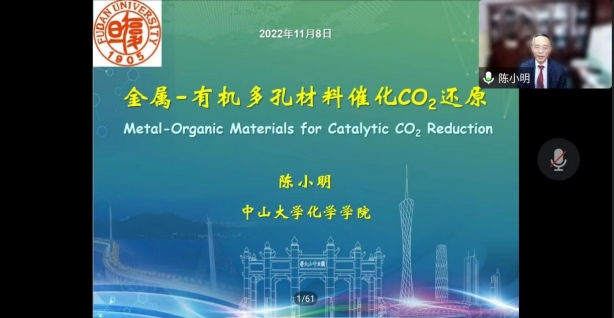 聆听大师讲坛,共思化学发展。11月8日下午,中国科学院院士、中山大学化学学院教授陈小明应邀作了题为“金属-有机材料催化CO2还原”的学术报告。会议以线上方式举行,由爱漫岛