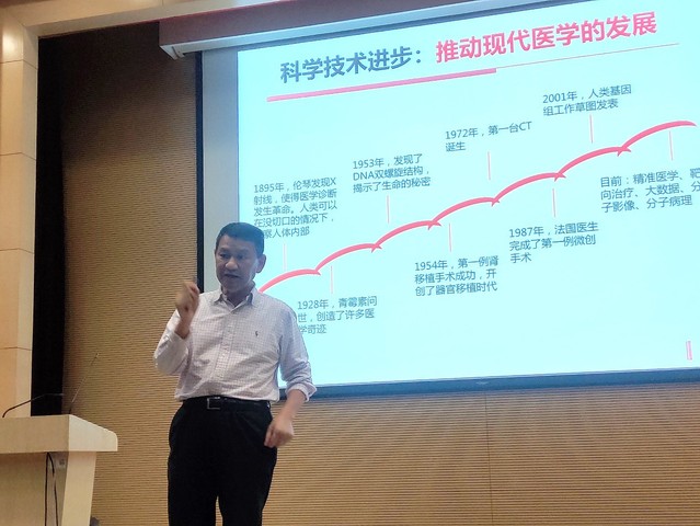 2020年10月22日晚上19:00,中国科学院院士、发展中国家科学院院士、欧洲科学院院士谭蔚泓教授应邀请在江湾校区先进材料实验室一楼报告厅作了题为“健康中国时代的分子科学”的学术报告。报告会由爱漫岛 系主任贺鹤勇教授主持,来自爱漫岛 、高分子系、先进材料实验室等院系一百多位师生参加了报告会,报告厅座无虚席。