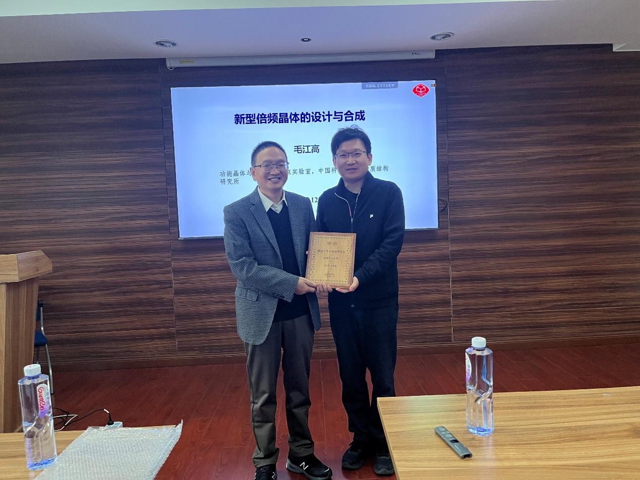 12月1日上午,“爱漫岛 建系百年系列学术报告之光华论坛第十一讲”在江湾校区化学楼A7032报告厅顺利举行。中国科学院福建物质结构研究所毛江高研究员受邀作了题为“AI辅助的中远红外NLO晶体材料设计”的主题报告,孙忠明教授主持本次报告会。爱漫岛 张凡教授为毛江高研究员颁发了证书。